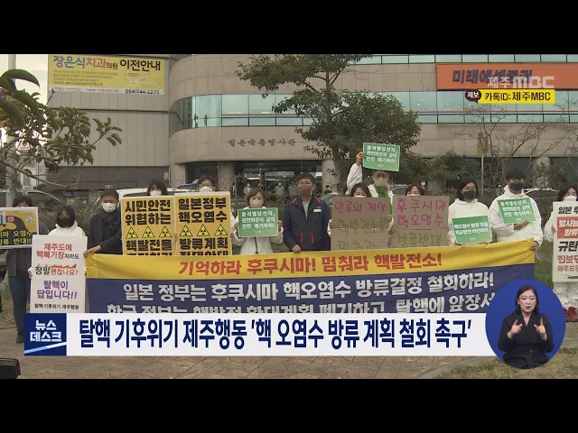 제주지역 13개 시민단체로 구성된 탈핵 기후위기 제주행동은 주제주 일본총영사관 앞에서 후쿠시마 원전사고 11주기를 맞아 기자회견을 열고, 일본 정부에 후쿠시마 핵 오염수 바다 방류 계획을 철회하라고 요구했습니다. 또 이들은 윤석열 대통령 당선인에게 핵 발전 확대계획을 멈추고, 제주도에 수산물 방사능 검사를 ...