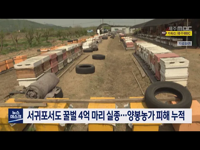 이상기온과 기후변화 등으로 서귀포에서도 꿀벌 4억 마리 이상이 실종된 것으로 집계됐습니다. 서귀포시에 따르면 지난 8일 기준으로 서귀포 지역 165개 농가에서 꿀벌 실종 신고가 접수됐고, 사라진 꿀벌 수는 4억 8천여 마리로 추산됩니다. 지난달 말 제주도 조사에서도 도내 양봉농가의 31%가 피해를 입은 것으로 나타났...
