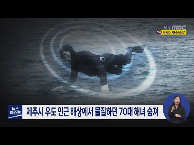 오늘 오후 12시 40분쯤 제주시 우도면 비양도 앞바다에서 물질하던 70대 해녀가 실종됐다는 신고가 해경에 접수됐습니다. 해녀 A씨는 수색에 나선 해경에 30분 만에 발견돼 병원으로 옮겨졌지만 숨졌습니다. 해경은 동료 해녀 등을 상대로 정확한 사고 경위를 조사하고 있습니다.