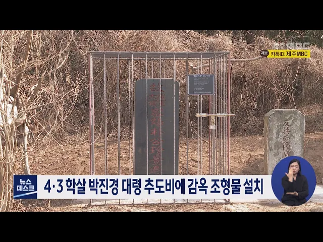 제주4·3기념사업위원회와 민주노총 제주본부 등 16개 단체는 제주시 한울누리공원 인근에 세워진 박진경 추도비에 ‘역사의 감옥에 가두다’라는 제목의 감옥 조형물을 설치했습니다. 이들은 박 대령이 일왕에 충성을 맹세한 일본군 소위 출신에 미군정 지시로 제주 4·3 학살을 집행했던 자라며 역사의 정의를 바로 세우기 ...