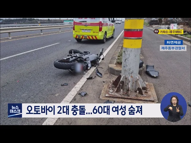 오늘 오전 9시쯤 제주시 구좌읍 김녕중학교 인근 삼거리에서 사륜 오토바이와 이륜 오토바이가 부딪쳐 사륜 오토바이를 몰던 60대 여성이 숨졌고 이륜 오토바이를 몰던 40대 남성이 다리에 경상을 입었습니다. 경찰은 정확한 사고 경위를 조사하고 있습니다.