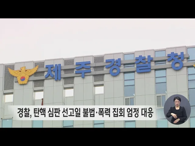 제주경찰이 대통령 탄핵 심판 선고일에 불법·폭력 집회에 엄정 대응하겠다고 밝혔습니다. 제주경찰청은 선고 당일인 모레(4일) 새벽 0시부터 전국 경찰관서에 갑호비상이 발령돼 경찰력 100% 비상 동원 태세를 갖추고 기동대와 형사, 기동순찰대 등 가용경력을 최대로 운용해 국민의 안전과 질서유지를 최우선으로 하겠다고...