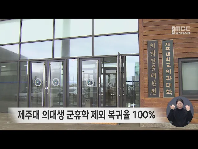 의대 증원 논란으로 휴학했던 제주대 의대생들이 모두 복학한 것으로 확인됐습니다. 제주대학교 의과대학 관계자는 어제(31일) 저녁 8시 기준 의대 재학생 310명 중 군 입대 휴학생 등 48명을 제외한 262명이 모두 복학했다고 밝혔습니다. 제주대 측은 추가 수강신청 기간이 남아있고, 온라인 강의를 병행하고 있어 당장 강...