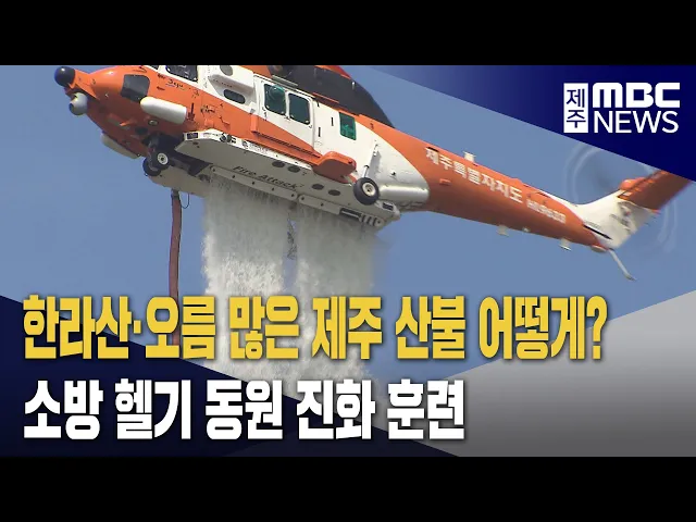 ◀ 앵 커 ▶ 최근 경북과 경남 지역에서 발생한 산불로 4만 8천여 헥타르가 불에 타고 70명이 넘는 인명피해가 났습니다. 한라산과 300개가 넘는 오름이 있는 제주도 산불이 나면 진화가 쉽지 않은데요. 제주도소방본부가 헬기를 활용한 진화 훈련에 나섰습니다. 훈련 현장을 이따끔 기자가 다녀왔습니다. ◀ 리포트 ▶ 제주소...