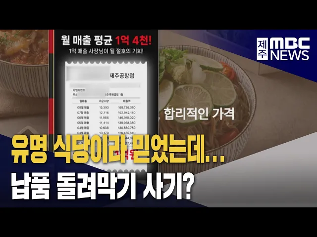 ◀ 앵 커 ▶ 제주공항에 입점한 한 유명 식당이 식자재를 납품받고 돈을 주지 않아 피해 신고가 잇따르고 있습니다. 피해를 입었다는 납품 업체들이 한두 곳이 아니었는데, 경찰은 해당 식당 관계자를 사기 혐의로 입건했습니다. 이따끔 기자가 보도합니다. ◀ 리포트 ▶ 제주에서 식자재 유통업체를 운영하고 있는 이준우씨. ...