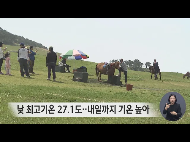 제주는 오늘도 낮 최고기온이 27도를 넘어서며 여름 날씨를 보였습니다. 제주지방기상청에 따르면 오늘(26일) 제주시 애월읍 유수암리와 조천읍 와산리의 낮 최고기온이 27.1도까지 올랐고, 한림 26.6도, 제주시 22.1도, 서귀포시가 21.5도를 기록했습니다. 내일도 기온이 평년보다 3도에서 11도정도 높겠고, 밤부터는 북서...