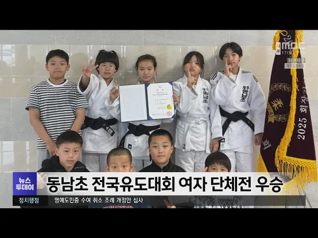 제주 동남초등학교 여자 유도 선수단이 전국 최강의 자리에 올랐습니다. 동남초는 지난 14일 충남 보령체육관에서 열린 '2025 회장기 전국유도대회' 여자 초등부 단체전에서 우승을 차지했습니다. 결승에서 철원초와 맞붙은 동남초는 강서은과 김예나가 내리 2경기를 따내며 기선을 제압했고, 장효민이 승리를 보태면서 우...