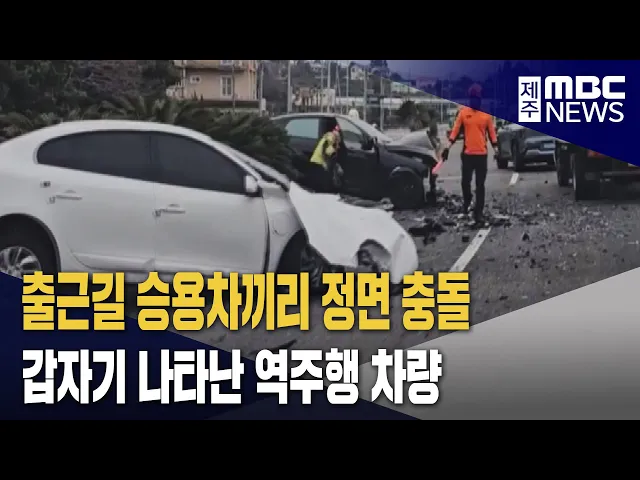 ◀ 앵 커 ▶ 서귀포의 한 일주도로에서 승용차끼리 정면 충돌해 운전자 2명이 크게 다쳤습니다. 평소와 다름없는 출근길이었는데, 갑자기 나타난 역주행 차량에 사고를 당했습니다. 이따끔 기자가 보도합니다. ◀ 리포트 ▶ 1차로를 달리는 흰색 승용차. 잠시 뒤 맞은편에서 검은색 승용차가 나타나더니, 흰색 승용차를 그대로 ...
