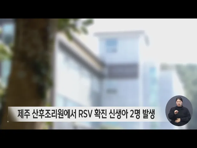 제주의 한 산후조리원에서 퇴소한 신생아 2명이 호흡기세포융합바이러스인 RSV 확진 판정을 받았습니다. 제주도에 따르면 산후 조리원에서 퇴소한 신생아 2명이 지난 4일과 10일 제주대병원에서 각각 RSV확진판정을 받았고, 보건당국이 산후조리원 입소자와 종사자 등을 대상으로 역학조사를 벌이고 있습니다. 감염자 접촉...