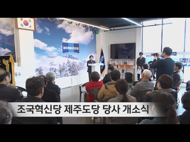 조국혁신당 제주도당 개소식이 열렸습니다. 개소식에서 김상균 제주도당 위원장은 신속한 내란 종식이 무엇보다 중요하다고 강조하고 도민들의 삶의 질을 향상하고 제주도의 밝은 미래를 만드는 건강한 야당이 되겠다고 밝혔습니다. 이번 개소식에는 김선민 조국혁신당 당대표권한대행과 제주 출신 정춘생 조국혁신당 국...