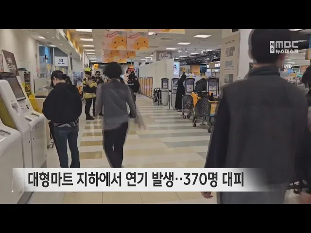 제주시내 한 대형마트 지하 1층에서 연기가 나 손님 수백 명이 대피하는 소동이 벌어졌습니다. 오늘 오후 4시 20분쯤 제주시 노형동의 한 대형마트 지하 1층에서 화재경보기가 울려 마트를 이용하던 손님과 직원 등 370명이 밖으로 대피했고, 이 과정에서 이용객 한 명이 크게 놀라 병원으로 옮겨졌습니다. 소방당국은 현장...