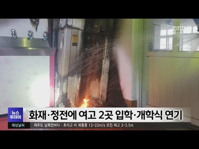 주말 사이 일어난 화재와 정전으로 제주지역 고등학교 두 곳이 입학식과 개학식을 연기했습니다. 제주도교육청에 따르면 어제(3일) 오전 9시쯤 제주시내 한 여고 급식실에서 불이 나 세척기 등이 불에 탔으며, 학교 측은 학생 안전을 위해 개학식과 입학식을 내일(5일)로 하루 연기했습니다. 제주시내 또 다른 여고는 긴급 ...