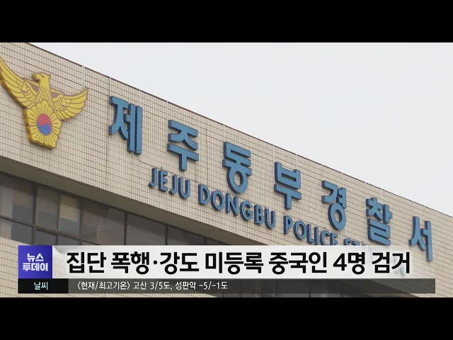 동료를 집단 폭행하고 돈을 빼앗은 20대 중국인 4명이 경찰에 붙잡혔습니다. 제주동부경찰서는 지난 16일 저녁 8시 반쯤 제주시내 한 주택에서 20대 중국인을 폭행하고 지갑에서 현금 100여만 원을 빼앗아 달아난 20대 미등록 중국인 4명을 특수강도 혐의로 검거해 구속영장을 신청했습니다. 이들은 경찰 조사에서 공사장 ...