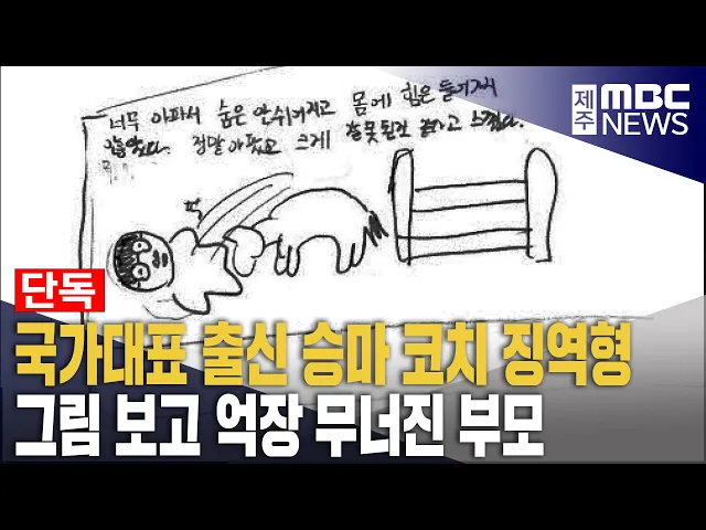◀ 앵 커 ▶ 국가대표 출신 승마 코치가 제주에서 가르치던 아이를 학대해 법원에서 징역형을 받고 법정 구속됐습니다. 욕설은 물론 포복을 시키고, 각설탕 여러 개를 강제로 입에 넣은 뒤 주변 사람들에게 사진까지 찍게 했습니다. 이따끔 기자가 단독 보도합니다. ◀ 리포트 ▶ 바닥에 누워있는 아이 옆에 말과 장애물이 그려...