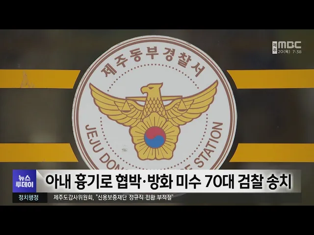 아내를 흉기로 협박하고 집에 불을 지르려고 70대 남성이 검찰에 넘겨졌습니다. 제주동부경찰서는 지난 9일 저녁 6시 반쯤 제주시 조천읍의 한 빌라에서 아내를 흉기로 협박하고, 집 안에 불을 지르려고 한 70대 남성을 체포해 특수협박과 방화미수 혐의로 오늘(19일) 검찰에 넘겼습니다. 이 남성은 경찰조사에서 건강식품 ...