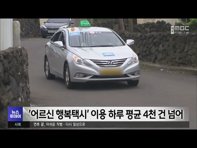 '어르신 행복택시' 이용 건수가 매년 증가한 것으로 나타났습니다. 제주도에 따르면 어르신 행복택시 하루 평균 이용 건수는 지난 2022년 2천700건에서 2023년 3천700건, 2024년 4천300건으로 꾸준히 증가했습니다. 제주도가 지난 2018년부터 운영 중인 '어르신 행복 택시'는 읍면 지역 65세 이상, 동 지역 70세 이상 어르...