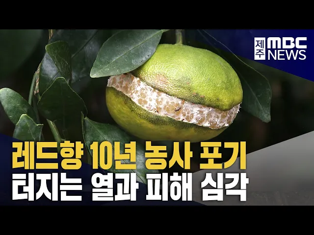 ◀ 앵 커 ▶ 지난해 기록적인 폭염으로 레드향 농가들이 열매가 터지는 열과 피해를 심하게 입었는데요. 피해율이 40%에 달하고 기후 위기도 심해지면서 레드향 나무를 잘라내고 농사를 포기하는 농가도 생겨나고 있습니다. 이따끔 기자가 보도합니다. ◀ 리포트 ▶ 레드향 나무 300그루가 자라고 있는 2천600㎡ 규모의 비닐하...
