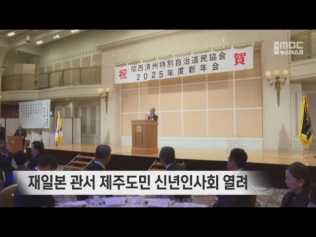 재일본 관서 제주도민 신년인사회가 오늘 저녁 일본 오사카에서 열렸습니다. 이번 인사회에는 관서도민회 회원들과 오영훈 도지사, 이상봉 도의회 의장, 김광수 도교육감 등 도내 주요 기관단체장 등 250명이 참석해 새해 인사를 나누고, 재일제주인들의 고향 사랑에 대한 감사의 마음을 전달했습니다. 오영훈 지사는 신년...