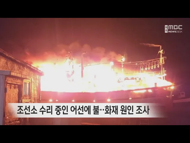 조선조에 있던 어선에 불이 나 2시간 만에 꺼졌습니다. 어제 저녁 8시 55분쯤 제주시 구좌읍 세화포구에 위치한 조선소에서 수리 중인 9.77톤급 갈치잡이 어선에 불이 났습니다. 다행히 인명피해는 없었지만, 화재 당시 바람이 강하게 불면서 어선에 있던 경유 2천 리터에 불이 옮겨붙어 2시간여 동안 어선 한 척이 모두 탔...
