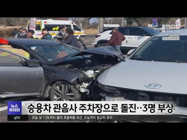 승용차 관음사 주차장으로 돌진‥3명 부상