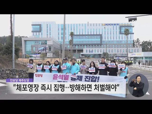 진보당 제주도당이 윤석열 대통령에 대한 강제 체포를 촉구했습니다. 이들은 제주경찰청 앞에서 기자회견을 열고 법원이 체포영장을 발부했지만 대통령측은 불법 체포영장 청구라며 대한민국의 법치주의를 대놓고 조롱하고 있다고 비판했습니다. 이들은 즉시 체포영장 집행이 이뤄져야 한다며, 경호처를 비롯해 체포영장 집...