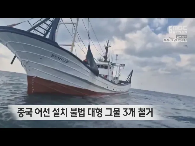 중국어선들이 불법으로 설치해 놓은 대형 그물들이 잇따라 철거됐습니다. 해양수산부 남해어업관리단은 그제(2일) 마라도 남쪽 105km 해상에서 중국 어선이 불법으로 설치한 대형 그물 3개를 철거하고 그물 안에 갇혀있던 조기와 갈치 등 물고기 4톤을 방류했다고 밝혔습니다. 남해어업관리단은 폐어선을 이용해 중국어선들...