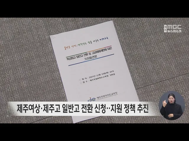 특성화고인 제주여상과 제주고가 일반고 전환 신청을 하면서 행정절차와 지원 정책이 추진됩니다. 김광수 제주도교육감은 기자회견을 열고 제주여상과 제주고가 지난달 5일과 29일에 각각 일반고 전환을 위한 '교육과정 변경 운영 신청서'를 교육청에 제출했다고 밝혔습니다. 교육청은 내년 1월 안에 운영위원회 심의를 벌...