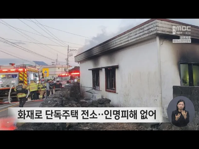 단독주택에서 불이 나 인명피해는 없었지만 주택이 모두 불에 탔습니다. 어제 오후 5시쯤 서귀포시 성산읍에서 1층짜리 단독주테에 불이 나 30분 만에 진화됐습니다. 화재 당시 집에 있던 가족들은 대피해 인명 피해는 없었지만 주택 60여㎡ 모두 불에 타 소방서 추산 2천100만 원의 재산피해가 났습니다.