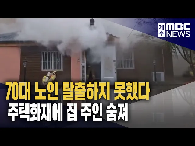 ◀ 앵 커 ▶ 제주의 한 단독주택에서 불이 나 혼자 있던 70대 여성이 미처 탈출하지 못하고 숨졌습니다. 경찰과 소방은 국과수와 합동 감식을 벌이고 있는데 겨울철 화재 사고가 잇따르고 있어 주의가 필요합니다. 이따끔 기자입니다. ◀ 리포트 ▶ 희뿌연 연기가 주택 지붕 위로 쉴새없이 뿜어져 나옵니다. 소방대원이 현관에...