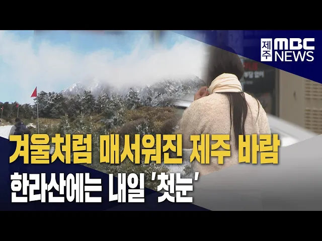 ◀ 앵 커 ▶ 오늘, 하루 종일 강한 바람이 불어 추위 느끼신 분들 많았을 텐데요. 내일은 기온이 더 떨어져 오늘보다 더 춥겠고 한라산에는 올가을 첫눈이 쌓이겠습니다. 이따끔 기자가 보도합니다. ◀ 리포트 ▶ 바닷가에 파도가 세차게 몰아칩니다. 구경하던 시민들은 바람에 모자가 날아갈까 손으로 눌러쓰고, 산책길을 걷던...