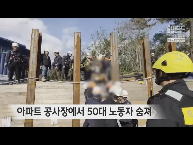 신축 아파트 공사장에서 일하던 50대 노동자가 숨졌습니다. 오늘 오전 10시 55분쯤 제주시 건입동의 한 아파트 전기 가설공사 현장에서 중장비로 배관을 끌어당기는 작업을 하던 50대 남성이 얼굴 등을 크게 다쳐 119에 의해 병원으로 옮겨졌지만 숨졌습니다. 경찰은 배관 장치에 고정된 줄이 끊어지면서 사고가 난 것으...