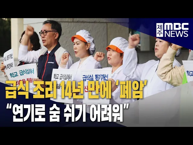 ◀ 앵 커 ▶ 제주의 한 학교 급식실에서 일하는 조리실 노동자가 처음으로 폐암 진단을 받았습니다. 동료들은 볶거나 튀기는 요리를 할 때 나오는 미세물질인 '조리흄'이 원인이라며 산업재해 인정과 조리실 환경 개선을 요구했습니다. 이따끔 기자가 보도합니다. ◀ 리포트 ▶ 저녁 급식 준비가 한창인 제주의 한 고등학교 식...