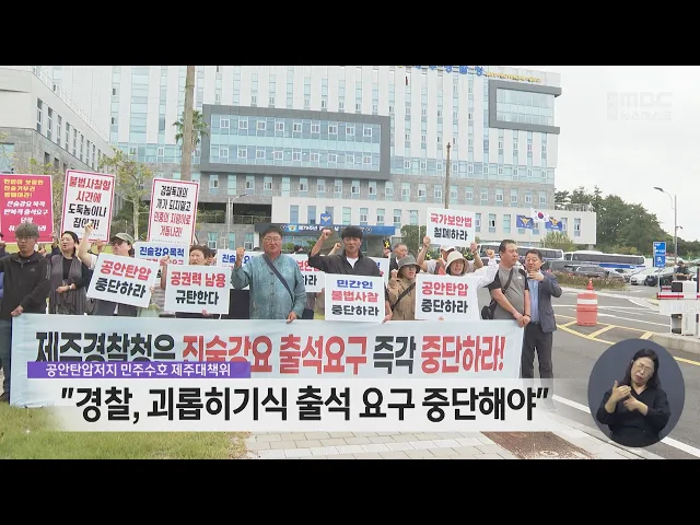 국가보안법 위반 혐의로 수사를 받고 있는 피의자들이 경찰의 괴롭히기식 출석 요구를 비판하며 조사 중단을 촉구했습니다. 공안탄압저지 민주수호 제주대책위는 제주경찰청 앞에서 기자회견을 열고 사건 당사자들이 1년 넘게 진술 거부 입장을 밝혔음에도 경찰이 자백을 받기 위해 출석을 요구해 괴롭히고 있다며 차라리 ...