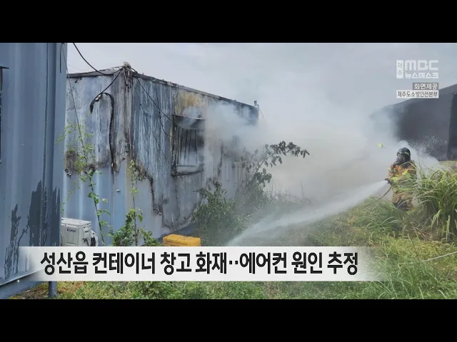 성산읍 컨테이너 창고 화재..에어컨 원인 추정