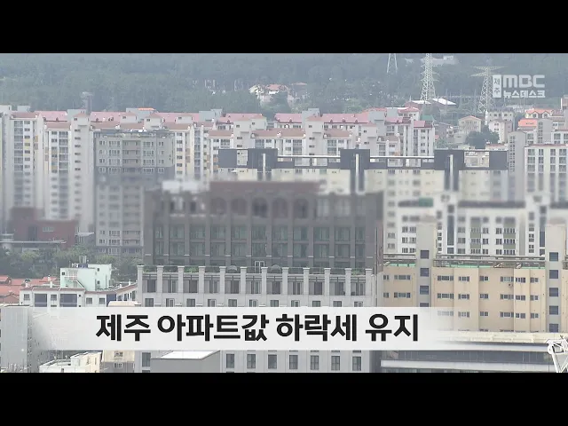 전국 아파트값 상승세에도 제주지역 아파트값은 하락세를 기록했습니다. 한국부동산원이 공개한 지난달 30일 기준 전국 아파트 매매가격은 전주보다 0.02% 올라 상승세를 보였지만, 제주는 0.02% 떨어져 하락세를 유지했습니다. 같은 기간 아파트 전셋값도 전국 평균 0.05% 상승했지만 제주는 0.05% 내려 하락폭이 확대...