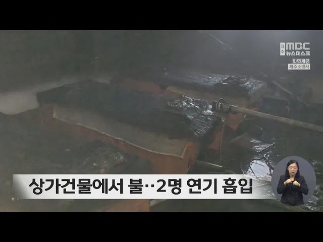 제주시내 상가건물에서 불이 나2명이 연기를 흡입했습니다. 오늘 아침 7시 10분쯤제주시 노형동의 4층짜리 상가건물에서 불이 나 청소 노동자 2명이 연기를 흡입해,80대 여성이 스스로 대피했고70대 여성은 119에 구조돼병원으로 옮겨져 치료를 받았습니다. 또 건물 400여 제곱미터가불에 타거나 그을려 소방서 추산 3천10...