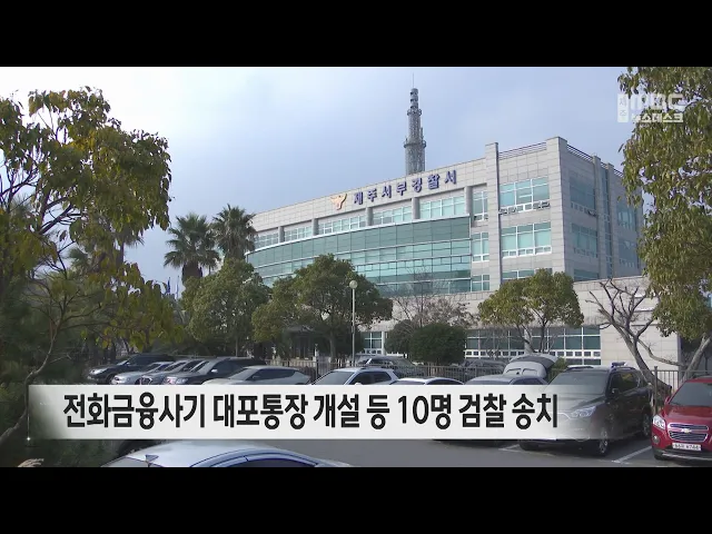 이른바 대포통장을 만들고 돈을 송금해주는 등 전화금융사기에 가담한 일당 10명이 검찰에 넘겨졌습니다.제주서부경찰서는 대포통장을 만든 20대 남성 1명과 계좌로 들어온 피해 금액을 송금한 9명을 붙잡아 전자금융거래법 위반 등의 혐의로 검찰에 넘겼습니다. 이들이 만든 대포통장 50여 개는 15명에게 2억 4천만 원의 ...