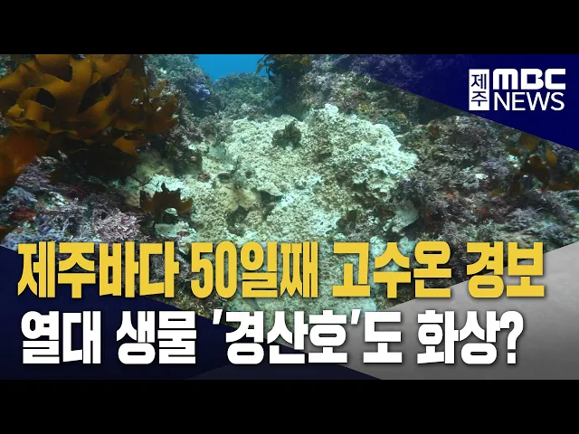 ◀ 앵 커 ▶ 최근 바닷물 온도가 높아지면서 서귀포시 앞바다에서 연산호가 녹아내리고 있다는 소식 전해드렸는데요. 연산호 뿐만 아니라 열대 바다에 주로 서식하는 경산호들도 하얗게 변한 채 발견됐습니다. 이따끔 기자가 보도합니다. ◀ 리포트 ▶ 푸른 바닷속 넓은 영지버섯처럼 생긴 빛단풍돌산호 군락. 세계적 멸종위기...
