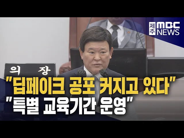 ◀ 앵 커 ▶ 제주도의회가 김광수 교육감을 출석시켜 교육행정 질문을 가졌습니다. 전국적으로 잇따르고 있는 딥페이크 범죄에 대한 교육청의 대응책이 필요하다는 지적과 함께 최근 이뤄진 고교체제개편에 대해서도 우려의 목소리가 나왔습니다. 이따끔 기자가 보도합니다. ◀ 리포트 ▶ 특정인의 얼굴에 다른 영상을 합성해 ...