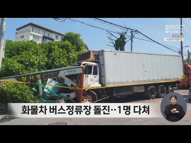 화물차 버스 정류장으로 돌진해 1명이 다쳤습니다. 오늘 오전 10시 20분쯤 제주시 화북동의 한 골목길에서 11톤 화물차가 주차된 차량 2대를 들이받은 뒤 버스 정류장으로 돌진했습니다. 이 사고로 차에 짐을 싣고 있던 60대 남성이 다쳐 병원으로 옮겨졌고, 차량 2대가 심하게 파손됐습니다. 소방당국은 브레이크가 작동하...