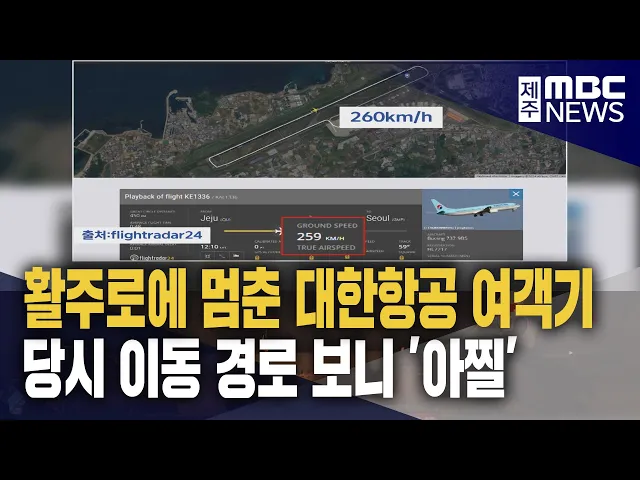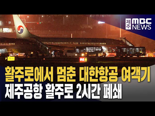 ◀ 앵 커 ▶ 어젯밤 대한항공 여객기가 이륙 직전에 고장 나면서 제주공항의 항공기 운항이 2시간 넘게 전면 중단됐습니다. 항공기 30여 편이 결항되거나 지연됐는데, 당시 운항 기록을 살펴보니 큰 사고로 이어질뻔합니다. 이따끔 기자가 보도합니다. ◀ 리포트 ▶ 한밤중 활주로에 항공기가 멈춰 섰습니다. 창밖에는 바퀴가...