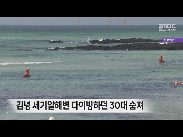 해변에서 다이빙하던 30대 남성이 물에 빠져 숨졌습니다. 어제(17일) 오후 4시쯤 제주시 구좌읍 김녕리 세기알해변에서 다이빙을 하던 30대 남성이 물에 빠져 병원으로 옮겨졌지만 숨졌습니다. 지난달 15일에는 제주시 함덕해수욕장에서 20대 안전요원이 다이빙을 하다 물에 빠져 병원에서 치료를 받다 숨졌고, 31일에는...