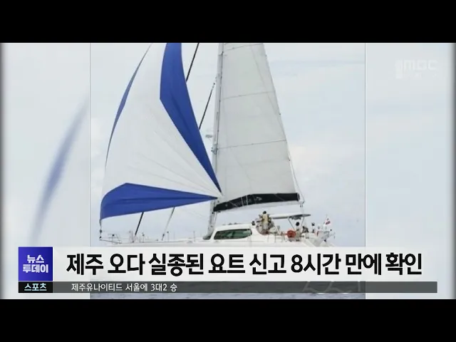◀ 앵 커 ▶ 지난달 제주 바다에서 신호가 끊긴 어선이 10시간 만에 무사히 발견된 적이 있었는데요. 통신 장비 이상이 원인이었는데, 이번에는 제주로 들어오던 요트가 8시간 동안 실종됐다 발견됐습니다. 어떻게 된 일인지 이따끔 기자가 취재했습니다. ◀ 리포트 ▶ 하얀 요트 한 대가 항구로 들어옵니다. 기다리고 있던 ...