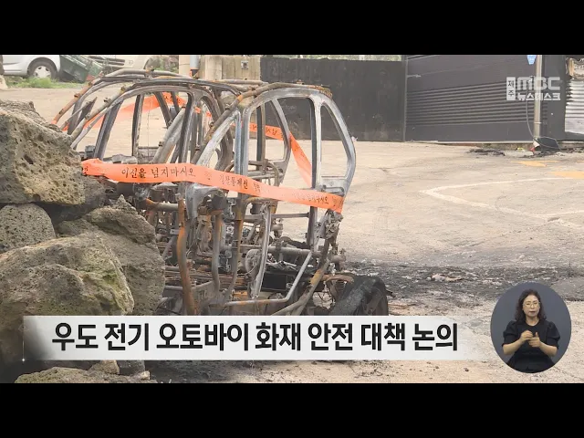 최근 우도에서 잇따른 전기오토바이 화재와 관련해 소방과 경찰이 대책 마련에 나섰습니다. 제주도소방안전본부는 오늘(3일) 우도면사무소에서 경찰과 납품업체 관계자 등과 함께 합동 회의를 열고 사고 원인과 전기 오토바이 운행 제한 방안 등을 논의했습니다. 우도에는 리튬 배터리를 사용하는 전기 오토바이가 115대 운...