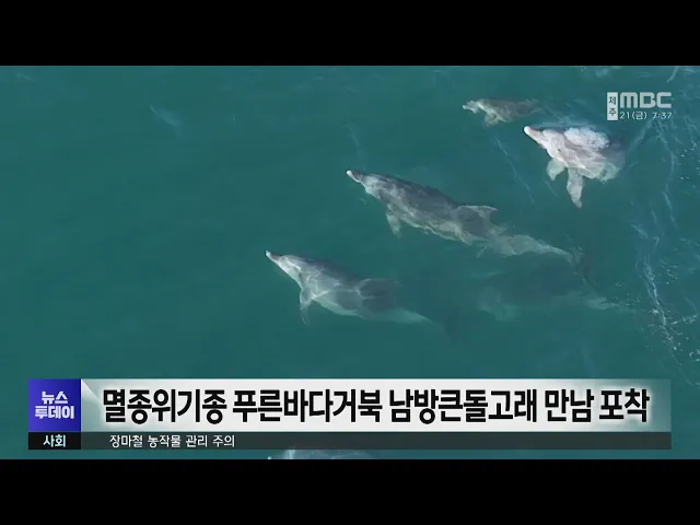 멸종위기종인 푸른바다거북과남방큰돌고래가 제주 바다에서 헤엄치는 모습이 카메라에 포착됐습니다. 지난 18일 저녁 6시쯤서귀포시 대정읍 무릉리 앞바다에서촬영된 영상에는푸른바다거북이 남방큰돌고래 무리를 만나물속으로 몸을 숨기는 장면이 담겼습니다. 두 멸종위기종이 헤엄치는 모습이 가까이에서 촬영된 건 드문...