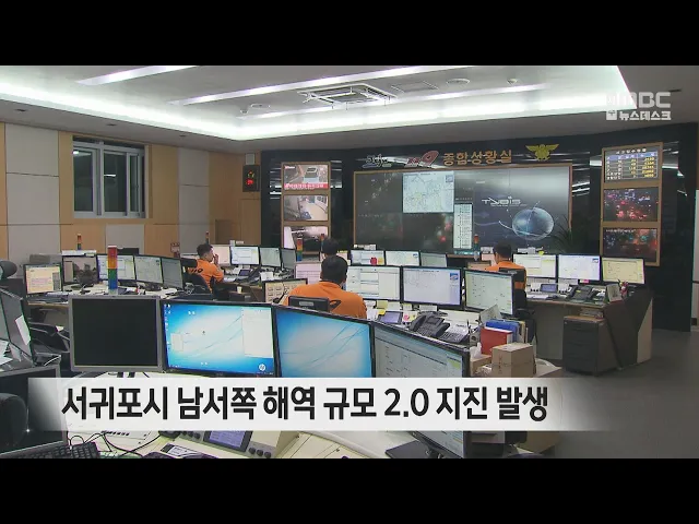 서귀포시 남서쪽 해역 규모 2.0 지진 발생