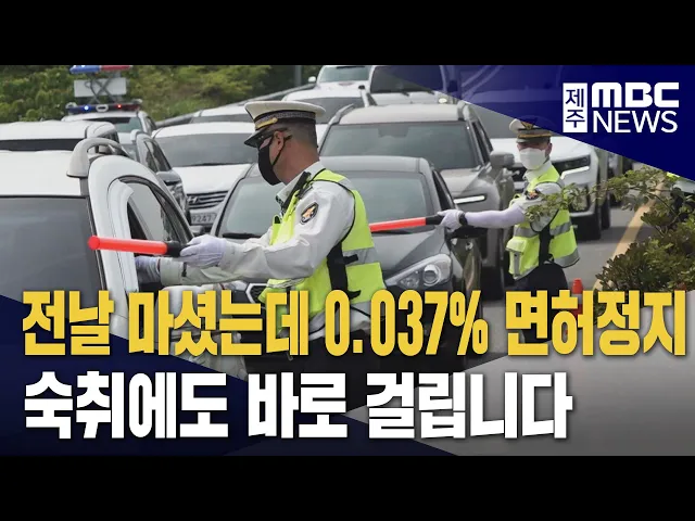◀ 앵 커 ▶ 전날 술을 마시고 아침에 일어나 운전대를 잡으시는 분들 계실 텐데요. 술을 많이 마시면 숙취로도 음주운전 수치가 나오는데, 경찰이 불시 단속을 벌여 1시간 만에 두 명을 적발했습니다. 이따끔 기자가 보도합니다. ◀ 리포트 ▶ 출근길이 끝나 한적해진 제주시 서부 지역의 한 도로. 경찰이 불시 음주 단속을 벌...