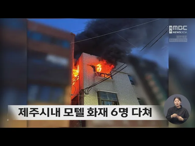 제주시내 숙박업소에서 불이 나모두 6명이 다쳤습니다. 오늘 새벽 5시쯤 제주시 이도이동 한 모텔에서불이 나 20여 분 만에 진화됐지만,투숙객 5명과 행인 1명이 연기를 흡입하고, 목 등에 화상을 입어 병원으로 옮겨져 치료를 받았습니다. 또, 이 업소의 투숙객 8명이 긴급 대피하기도했습니다. 경찰은 담뱃불에서 화재가...