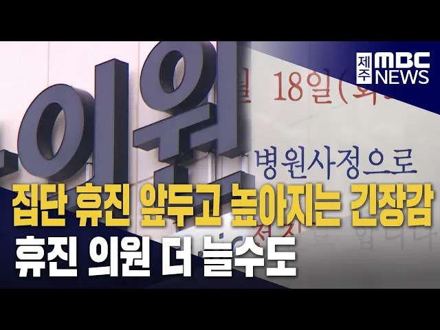 ◀ 앵 커 ▶ 대한의사협회가 발표한 병원 집단 휴진이 하루 앞으로 다가왔습니다. 제주에서도 개원의 휴진이 잇따를 것으로 예상되면서 지역 사회의 우려와 긴장이 높아지고 있습니다. 이따끔 기자가 보도합니다. ◀ 리포트 ▶ 제주시내 한 이비인후과. 건물에는 휴진을 알리는 공지가 붙었습니다. 대한의사협회가 선언한...