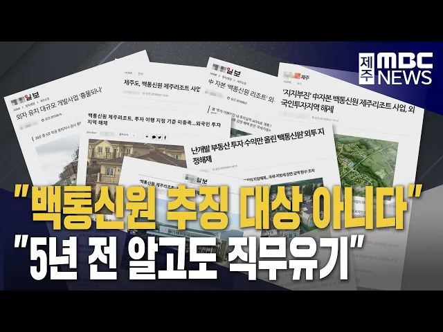 ◀ 앵 커 ▶ 중국 자본의 대규모 투자가 진행될 때마다계획대로 투자가 이뤄지지 않은 경우이미 감면받은 세금은 돌려받는지가가장 큰 쟁점 중에 하나입니다. 최근 오영훈 도지사의 비공개 방문으로논란이 된 백통신원 리조트도 마찬가지였는데제주도는 세금을 돌려받을 수 없는 곳이란사실을 처음으로 공개했습니다.이따끔 ...